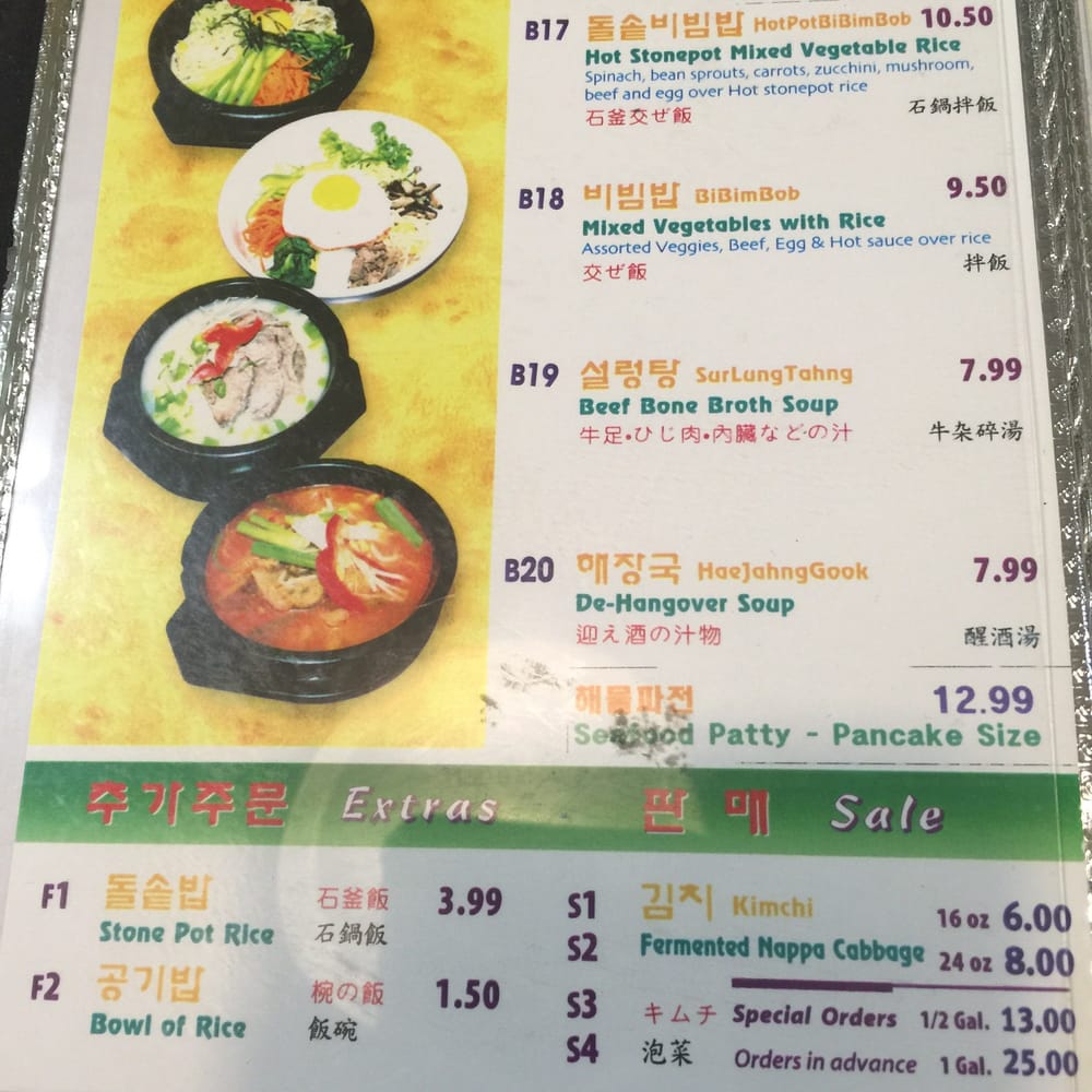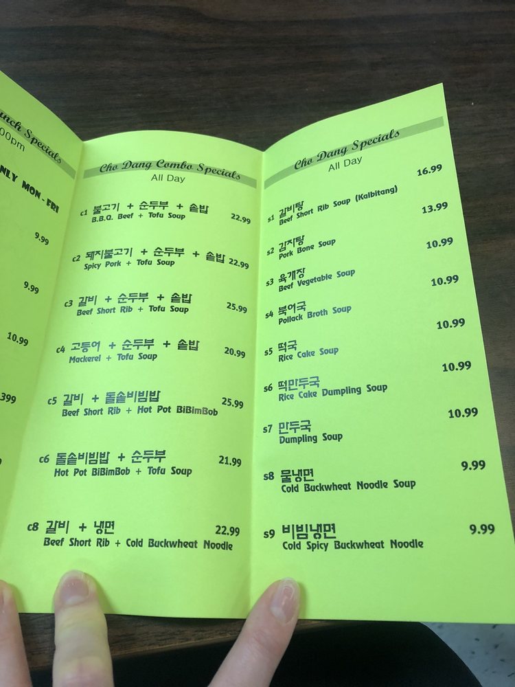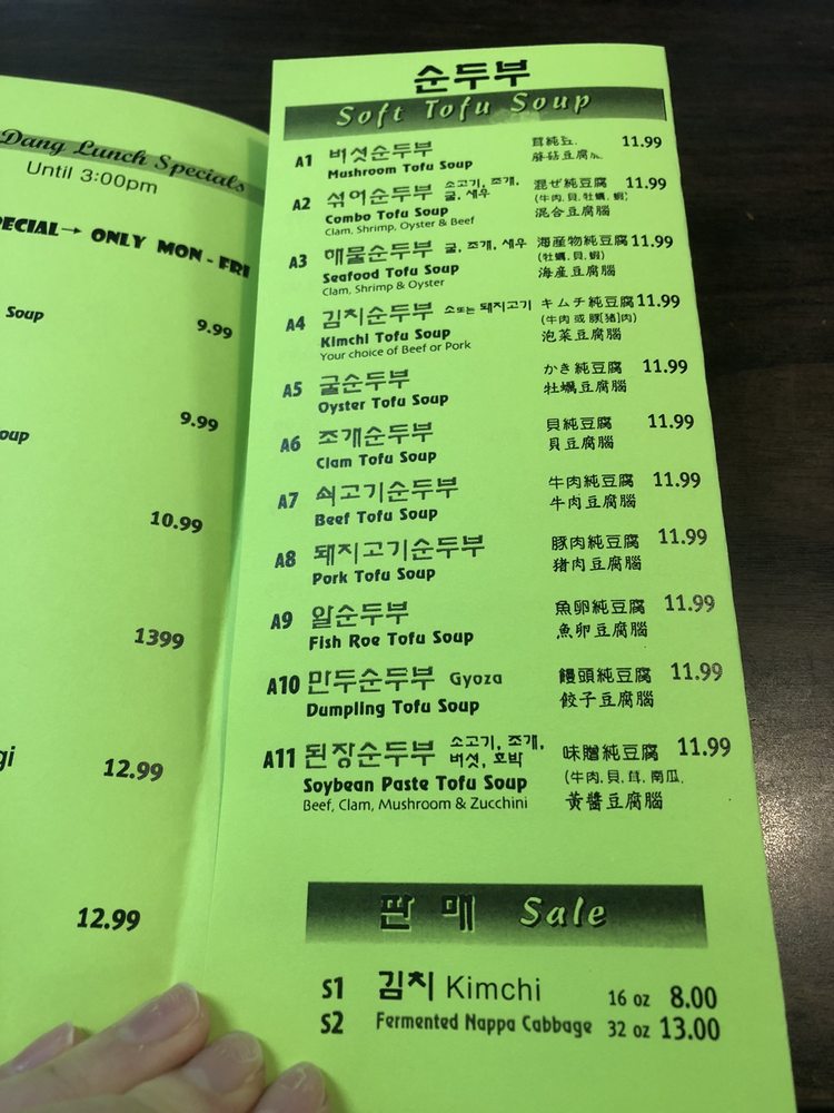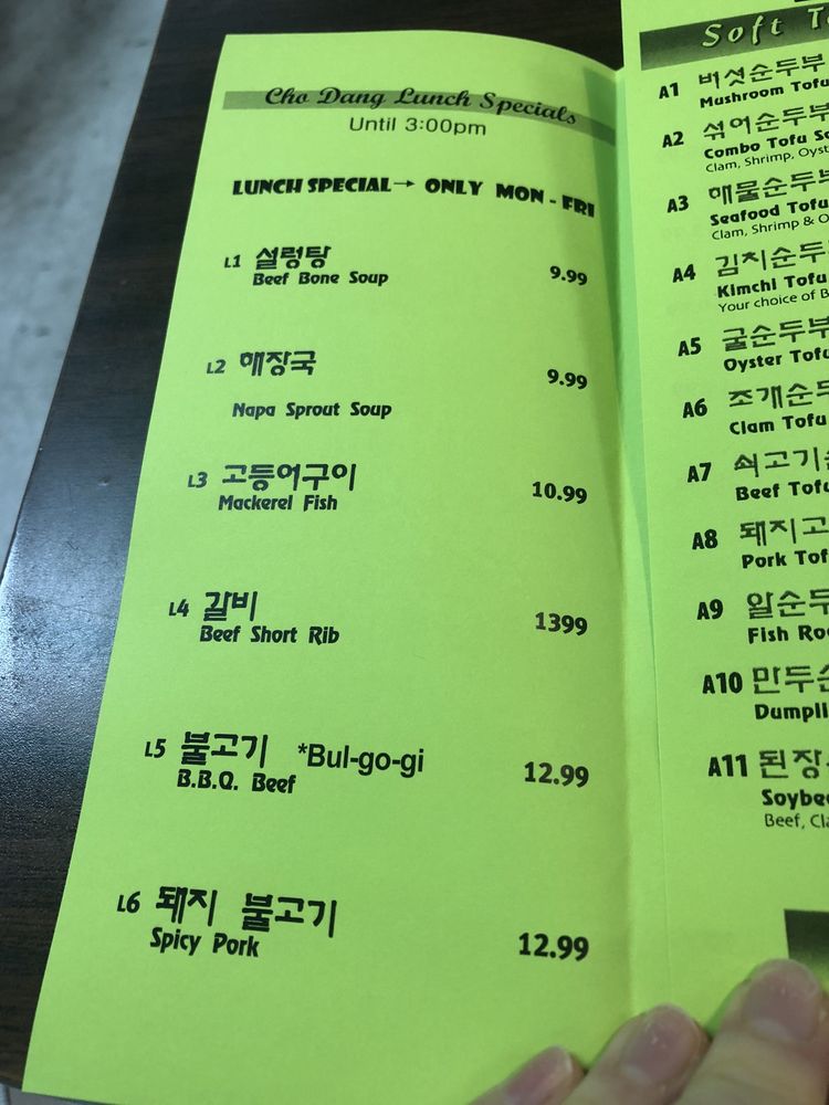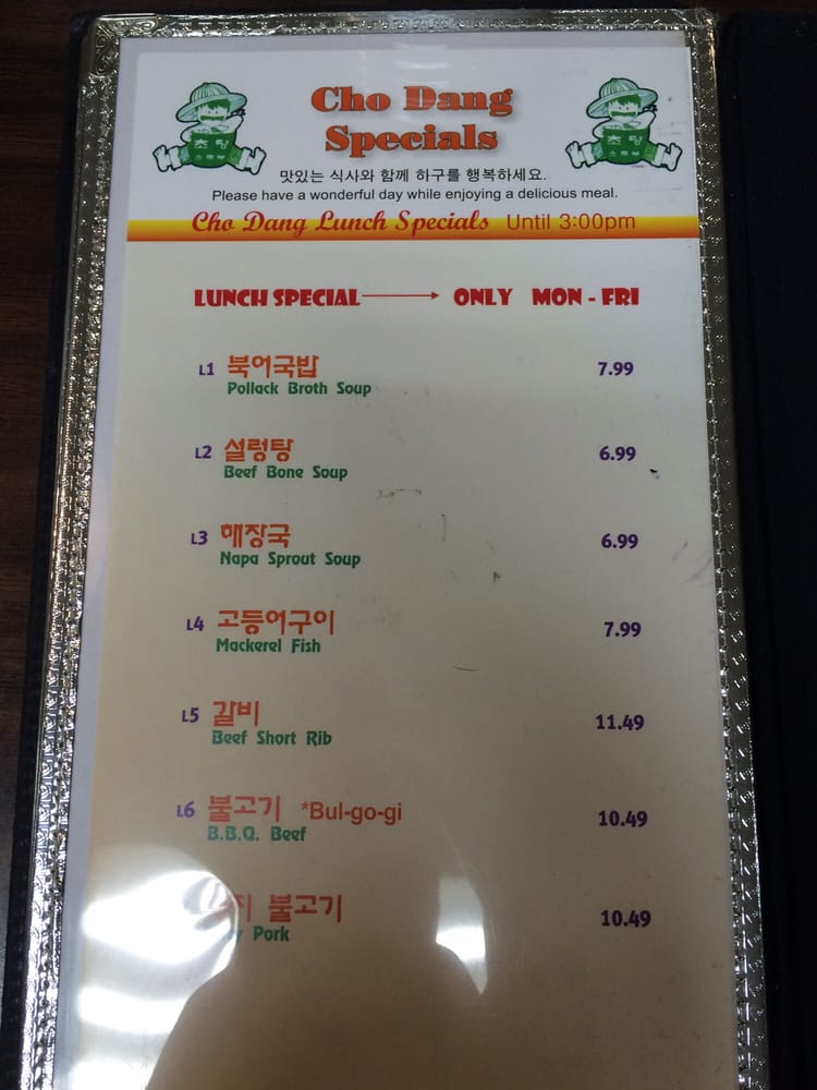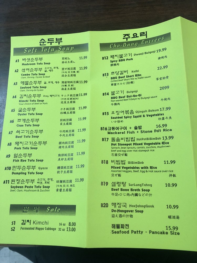 Cho Dang Tofu Restaurant Menu